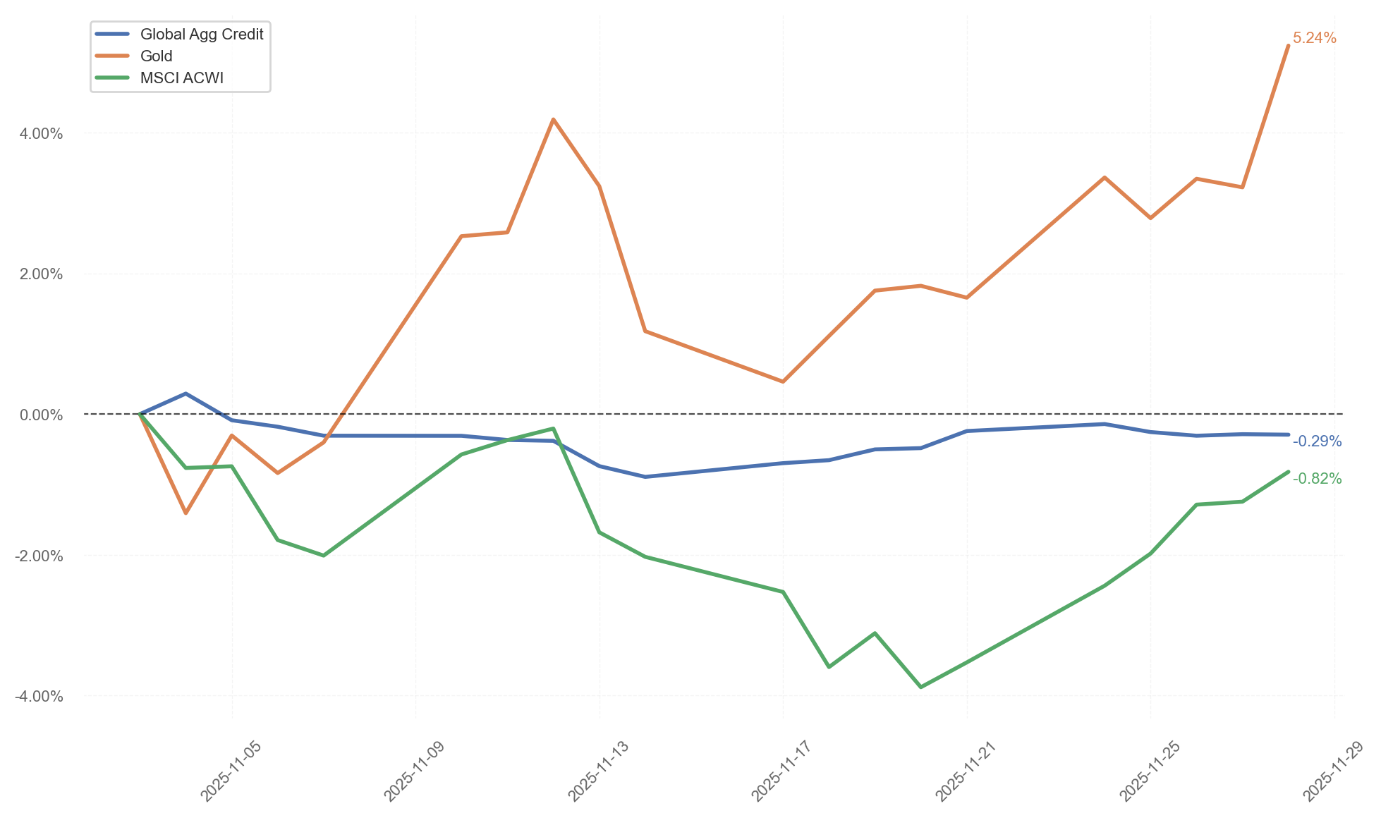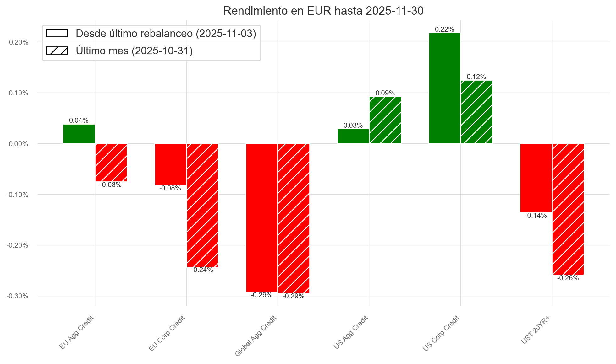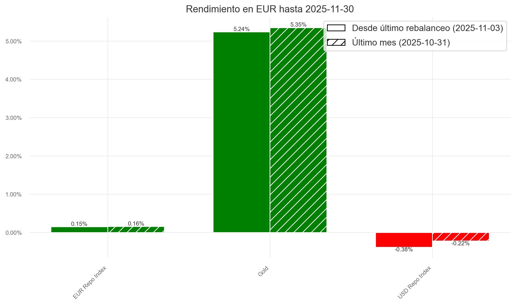 A pesar de las caídas en renta variable y fija del mes de noviembre, el fondo registró una ligera revalorización del +0,07 %, acumulando un +5,26 % en los últimos tres meses y un +10,08 % desde el 5 de mayo de 2025, fecha en la que empecé a asesorar al fondo en materia de inversión.