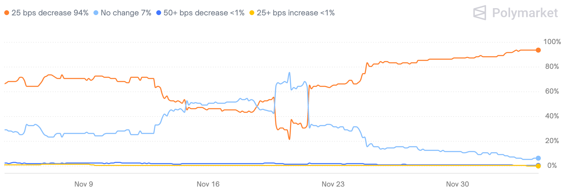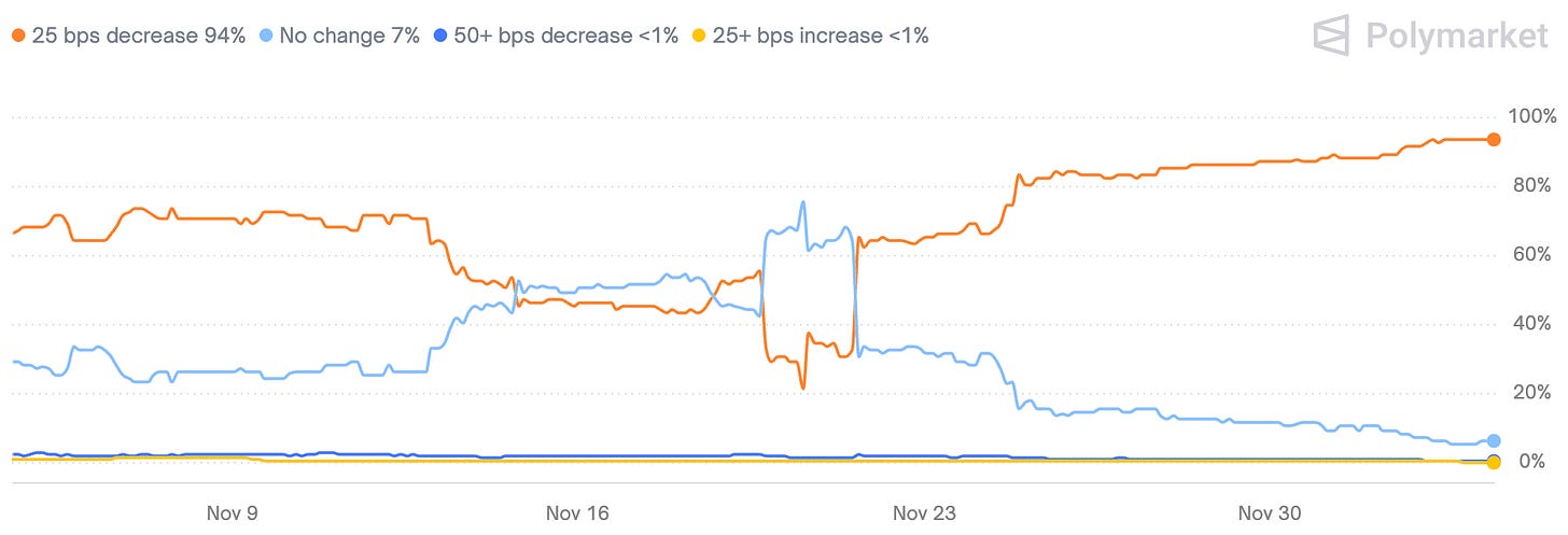 Como muestra la imagen, tras estos eventos, la probabilidad de un recorte en diciembre pasó del 22% a casi el 94% ahora.