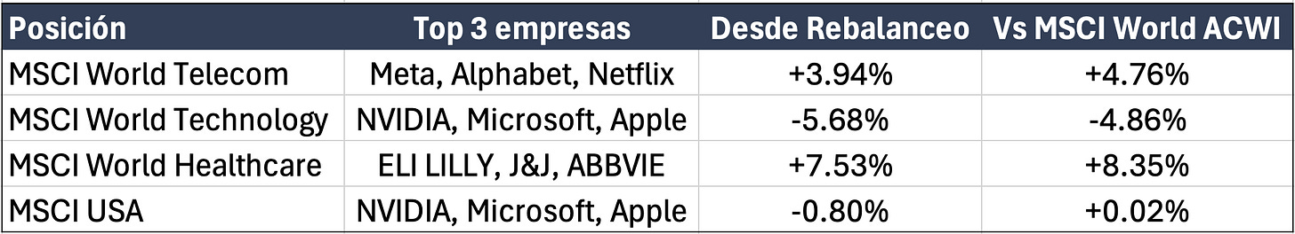 Desde el último rebalanceo de cartera, las sobrepoderaciones tácticas han generado un exceso de retorno medio del +2.07% respecto al MSCI World ACWI.