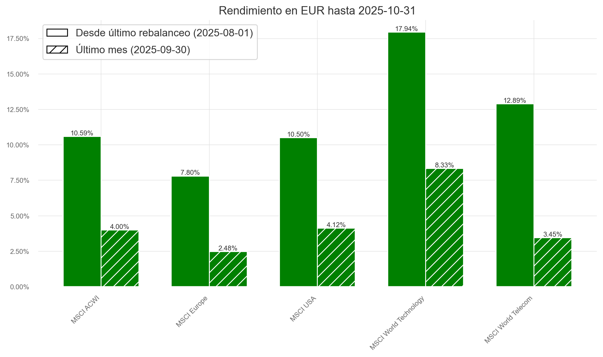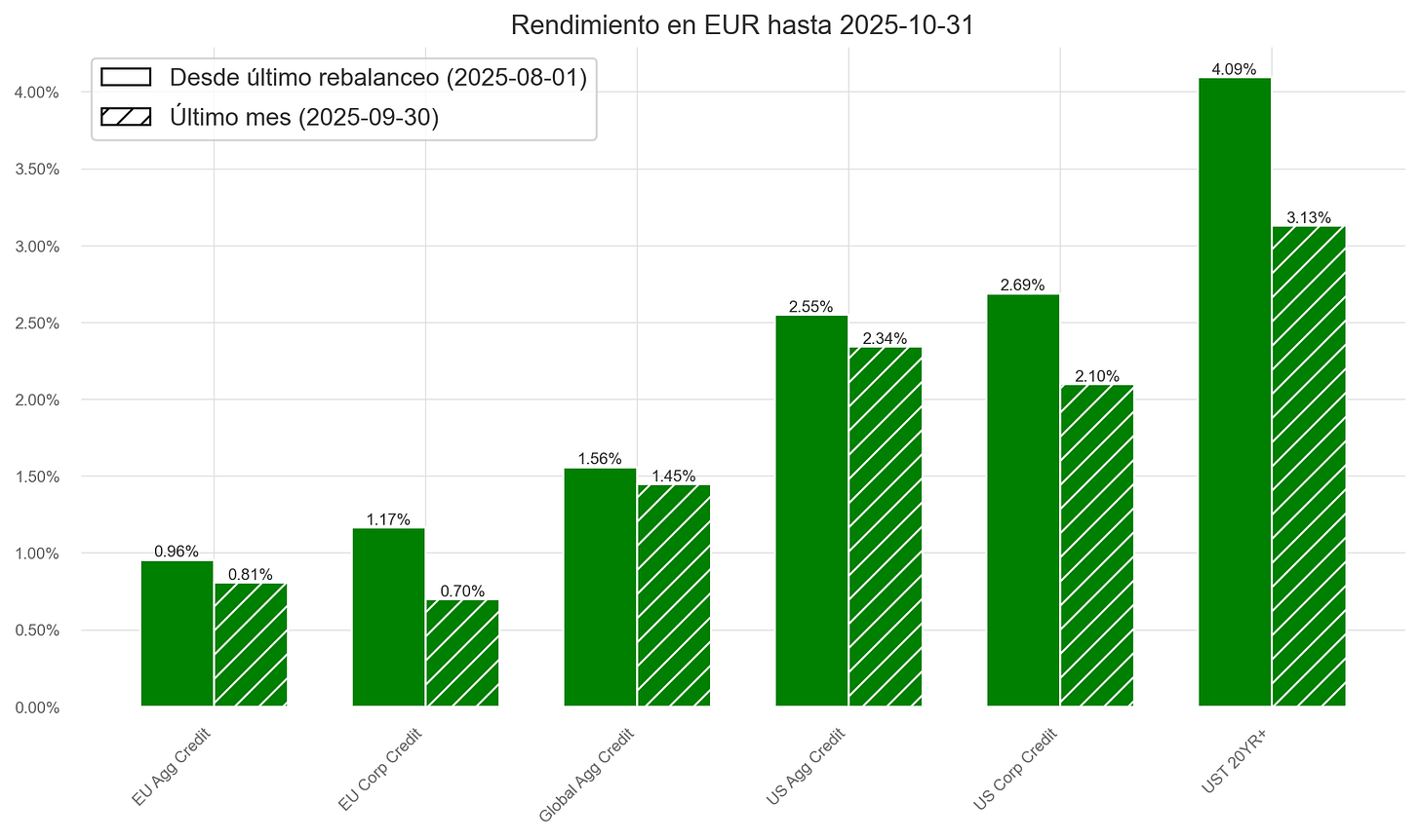 El mes estuvo marcado por un petróleo a la baja, resultados empresariales sólidos y un consumidor fuerte, lo que impulsó al MSCI ACWI +4%. A ello se sumó un nuevo pacto comercial entre EE. UU. y China, que redujo la incertidumbre geopolítica.