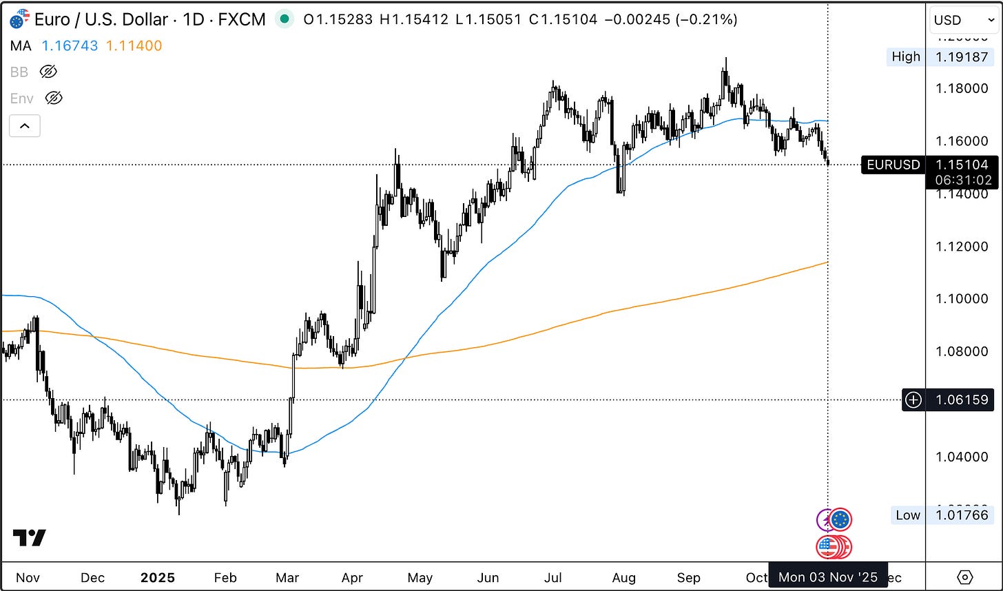En cuanto al dólar, sigo viendo potencial de revalorización frente al euro. La Fed tiene menos motivos que el BCE para recortar tipos: EE. UU. mantiene un crecimiento sólido y una inflación que no baja del 3%, incluso con el petróleo por debajo de 60 $.