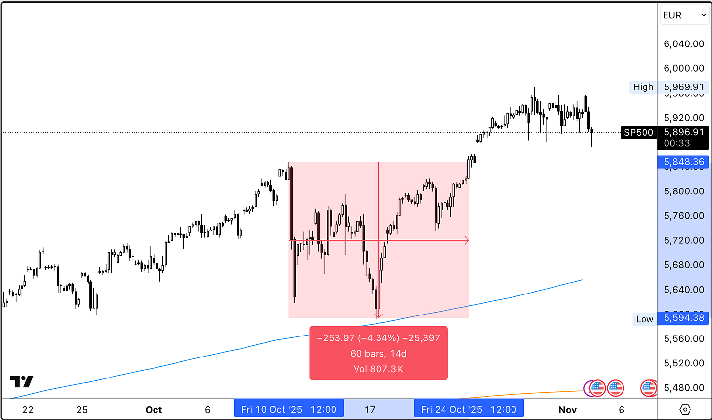 Este mes comenzó con un cierre parcial del gobierno de los EE. UU. y Trump amenazando a China con más aranceles, esto último hizo que el S&P 500 corrigiera más de -4.34% en euros. Ante este evento, el fondo tan solo retrocedió un -1.16%, 4 veces menos que este, poniendo una vez más a prueba la gestión del riesgo del fondo. De este evento también nos recuperamos antes, 7 días laborales, frente a los 11 que necesitó el S&P 500.