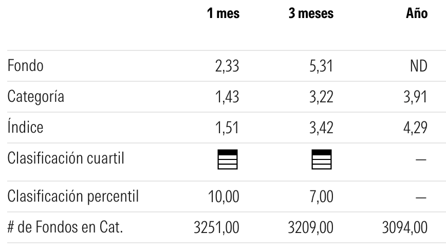 Morningstar también ha analizado el fondo, situándolo en el top 10% global en rentabilidad a un mes y en el top 7% a tres meses dentro de la categoría de fondos mixtos moderados.